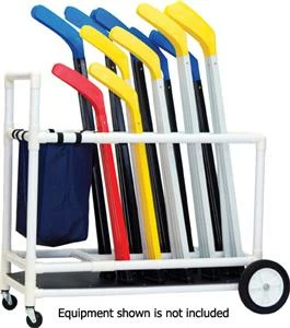 Deluxe floor hockey cart made of durable ABS tubing features heavy-duty non-marring swivel casters