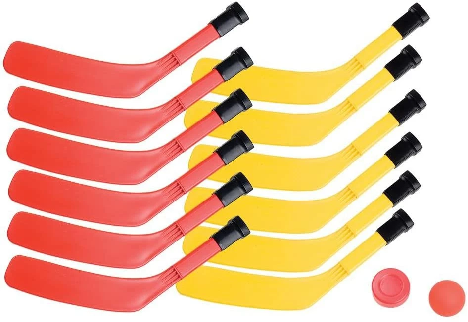 The Champion Sports Scooter Hockey Set is a great addition to any gym class or recreational sports facility. Meant to be used with scooters, this hockey set includes 12 short plastic hockey sticks, as well as one foam ball and two plastic pucks. These durable scooter hockey sticks are designed to be lightweight and durable enough to withstand hard shots from players.